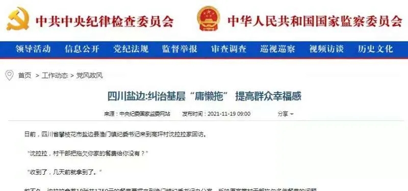 赞!中央纪委国家监委网站关注:盐边县纪委监委纠治基层“庸懒拖”作风顽疾